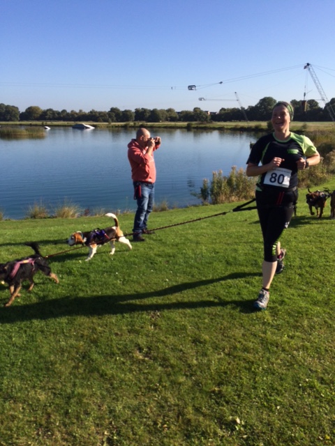 Bella the Beagle was making her racing debut. We rehomed Bella in July so she has had just over 2 months training with Colin and Ozzie (the seasoned canicross pro’s) to get fit for the new season. She took to camping like a duck to water and made a lot of new friends whilst taking all the new sights and sounds in her stride.